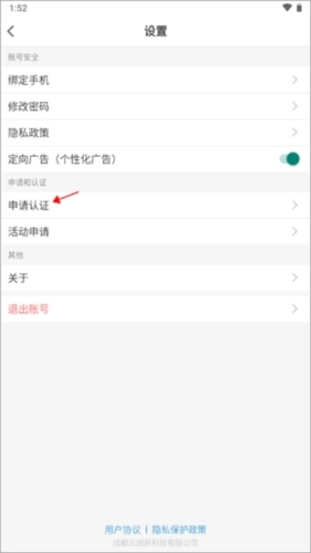 2、此处所有功能选项均用于设置系统参数,请点击“申请认证”。