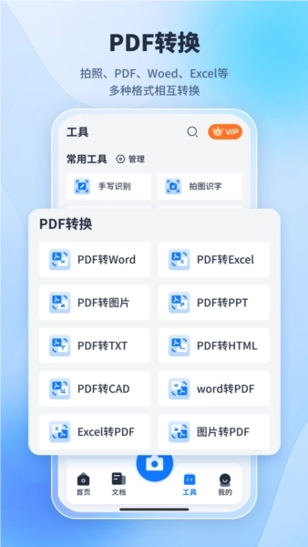 4.一键式PDF转换功能:可实现PDF与多种格式的互转,包括PDF转Word、PDF转图片、PDF转Excel、PDF转PPT、PDF转TXT、PDF转HTML,以及图片转PDF、Word转PDF、PPT转PDF、Excel转PDF、CAD转PDF、OFD转PDF等。