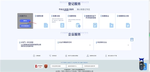 6、进入市场主体一网通办页面后,点击登记服务选项,接着选择我要开办中的新开办选项;