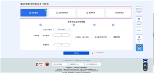 8、选定办理类型后,依据实际需求挑选对应的登记业务;选好之后,点击“开始办理”按钮。