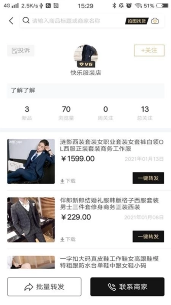 4、关注店铺,及时获取店铺新品上架信息,在线实时完成进货操作