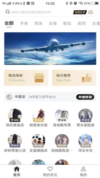 1、进入应用首页后,马上查看平台提供的各类货源类型以及店铺列表