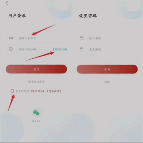 3、然后会跳转到登录页面,如果没有账号可以直接输入手机号,获取验证码后会直接注册,随后自动跳转到设置密码页面;