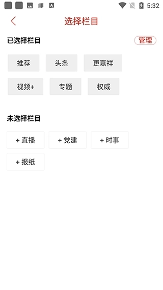 1、打开软件,点击右上角可以管理选择想看的栏目类别。