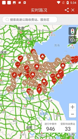 4、点击实时路况可以查看当前地段道路拥堵状况。