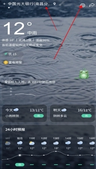 1、打开软件后点击设置图标,或是其中城市的图标。