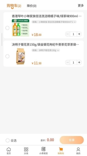 4.依据商品的分类来选择并查看商品信息,接着将商品添加至购物车,随后完成结算流程;