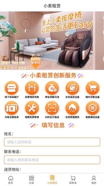 5.您可点击小柔租赁频道,挑选想要租赁的商品,填写相关信息并通过审核后,即可开始使用该商品。