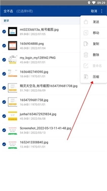 2、选择好后,点击右上角的三个点,选择【压缩】。