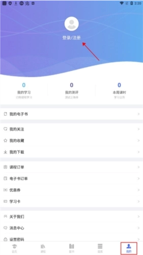 1、先进入柏杜法考平台,接着点击“我的”选项,再进行登录注册操作。