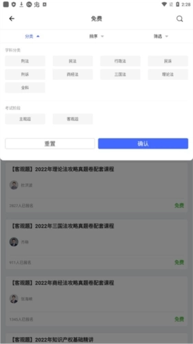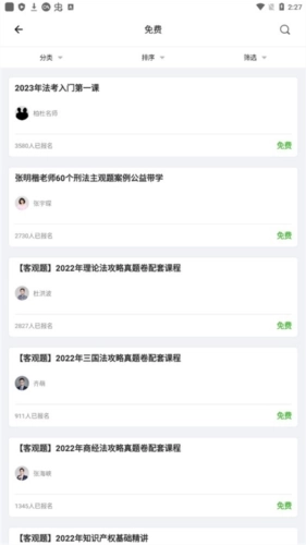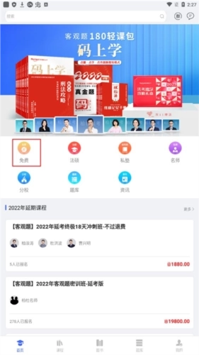 1、进入柏杜法考主界面,我们点击“免费”;