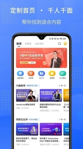 51CTO学堂企业版专注于为用户打造优质的学习体验,并提供全方位的技能提升解决方案。借助智能推荐机制与个性化学习路径,助力用户在职场竞争中崭露头角。