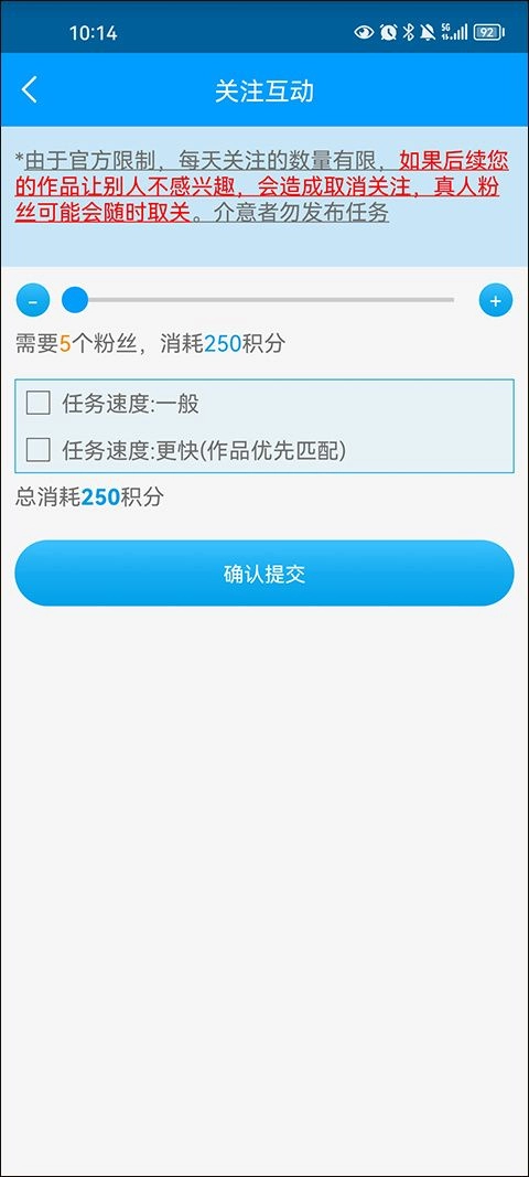 1、要想快速获得积分、涨粉,当然任务少不了啦,因此软件中提供了多个获取积分的任务类型选择
