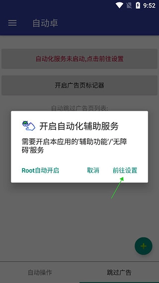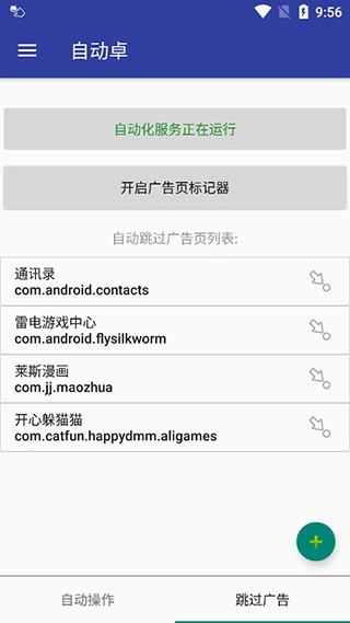 自动跳过应用的广告页,默认自动跳过首页广告,如果需要跳过应用内特定广告页,请使用'广告页标记器'。