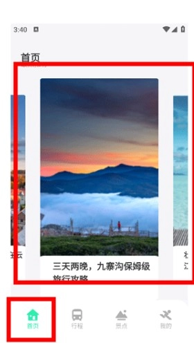 1、打开妙游记,进入首页,可以查看热门景点旅行攻略。