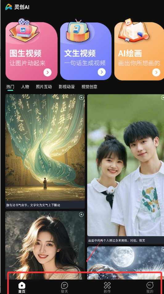 1、打开灵创AI软件进入首页,可以选择喜欢的风格。
