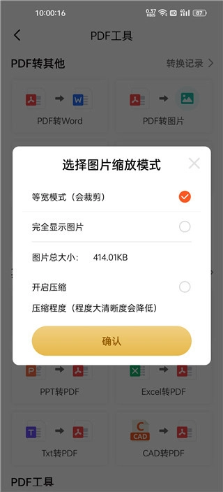 1. 图片转pdf新增页面自适应图片宽高模式;