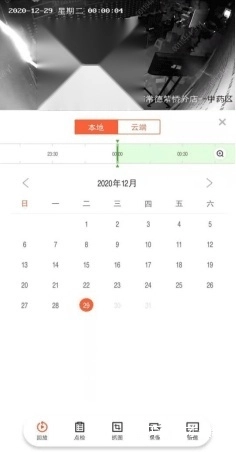5. 点击下方的“回放”按钮,通过回放功能选择日期和时间查看历史监控录像。