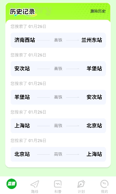 4、随时在线查看我们的历史车票查询记录,或者一键删除不需要的记录。