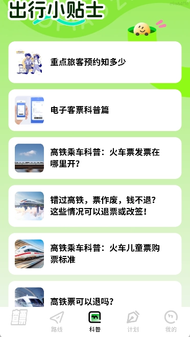 票票助手是一款非常实用的车票查询工具软件,让我们可以随时随地查询火车票或高铁的信息,并且还包括车票时间、余票数量等,这些信息都是非常权威可靠的。甚至还可以在线设置一条出现的路线,方便我们出行的规划。如果在乘车时有什么不了解的,还可以查看科普小知识,以免出现一些尴尬的场面!