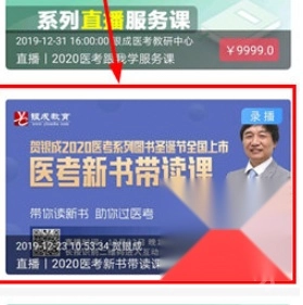 1、打开银成医考,进入到”直播“的功能界面中,选择一个可以观看的直播课程即可。