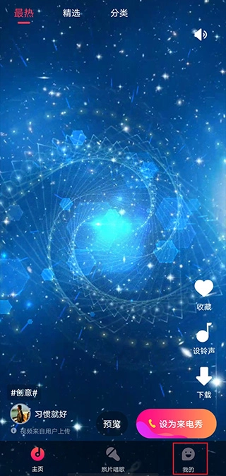 1、在魔趣网安装来电秀,进入来电秀后点击我的