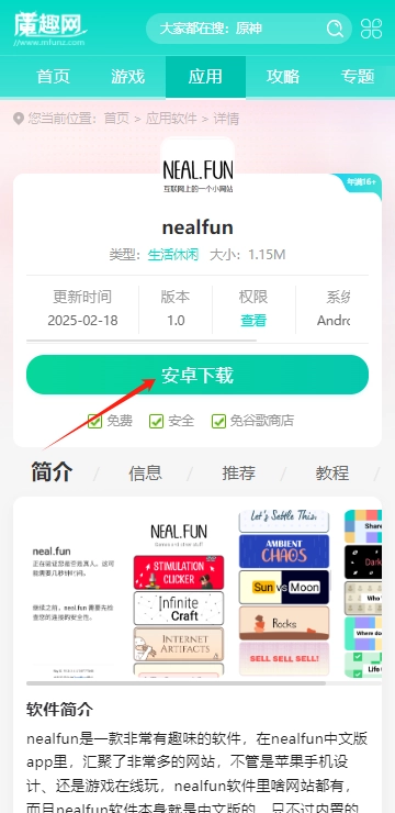 在魔趣网用浏览器打开https://m.mfunz.com/soft/7157.html,点击按钮即可轻松nealfun。