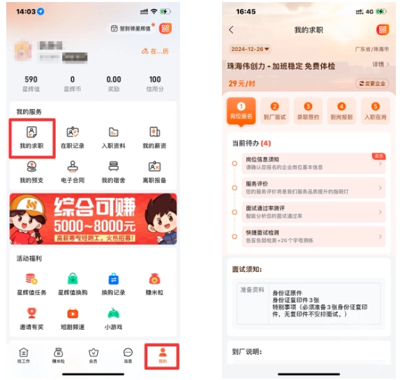 工作邀请:查看感兴趣公司,获取工作邀请。