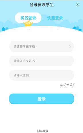 - 快速登录:输入翼课号、手机号或邮箱号,并输入密码。