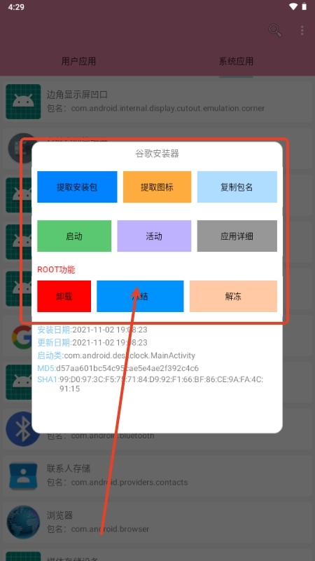 5. 系统应用也可以通过包名查看器进行相应的处理。