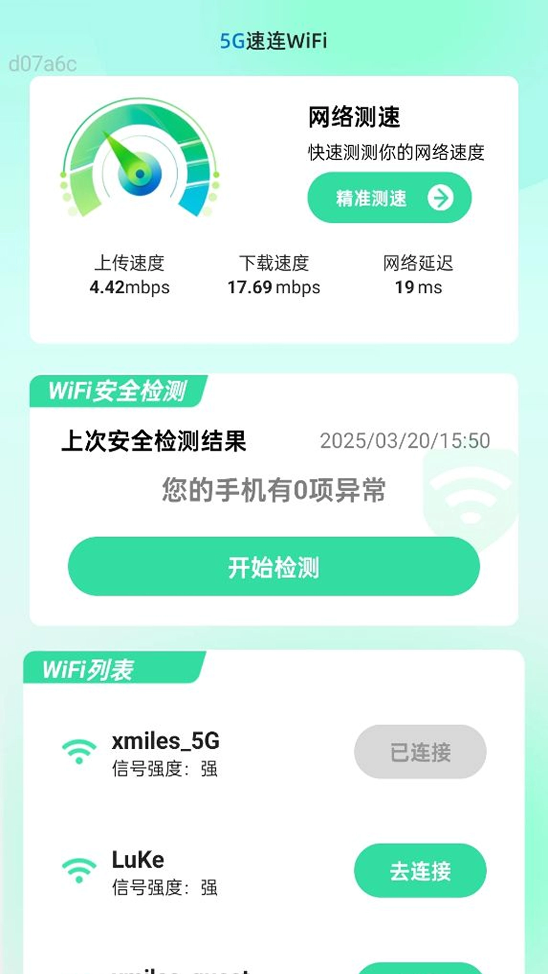 5G速连WiFi是一款多功能网络工具,致力于提升用户上网的便捷性与安全性。它具备生成并自动记录WiFi密码的功能,有效防止密码遗忘;提供网络测速服务,可实时监测网络性能;开展上网安全检测,确保连接安全;此外还附带四则运算等实用计算功能。这款应用能让用户随时享受到稳定、安全的WiFi连接,免费就能体验畅快的上网感受。