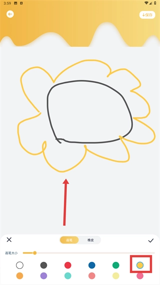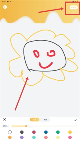 4、创作完成后,点击右上角的【保存】按钮,就能把涂鸦作品存到设备里,这样整个创作流程就完成了。