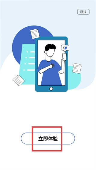 1、在应用引导页,点击【立即体验】按钮(也可选择右上角的【跳过】选项),即可进入应用的版本选择界面。