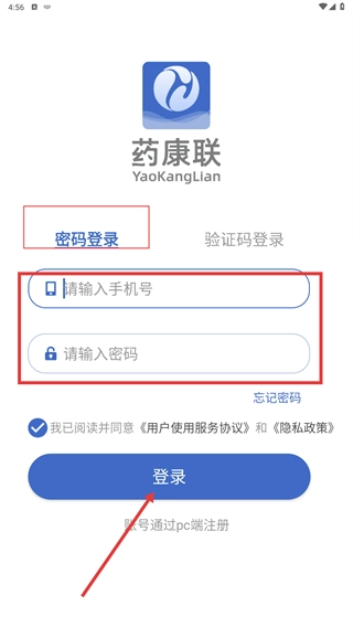 3、选择【密码登录】的方式,输入手机号与密码,勾选相关协议后点击【登录】按钮,即可完成验证。