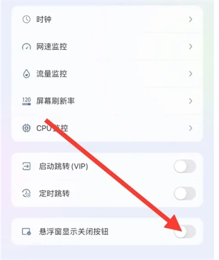 3、点击开启【悬浮窗显示关闭按钮】即可。