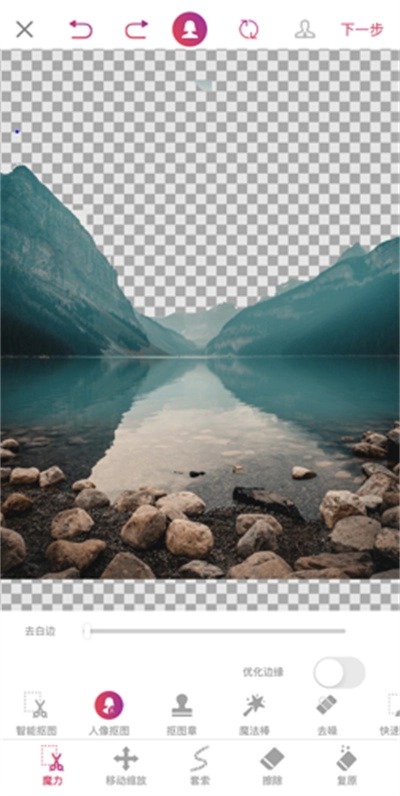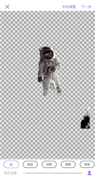 8.系统自动抠取主体后,可拖动优化边缘的滑块来改善边缘的锯齿问题,若有需要还能进行手动调整。