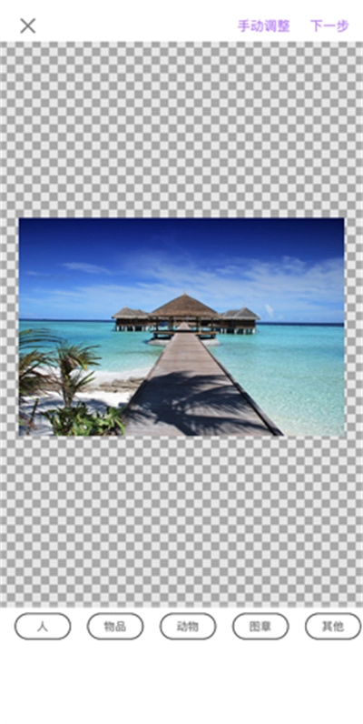7.若采用AI抠图功能,在导入图片之后,需要从人、物品、动物、图章等类别里挑选对应的选项,以此来对主体进行识别。