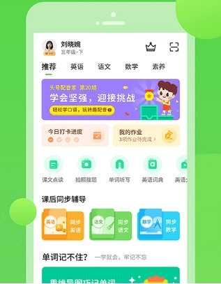 字词闯关、作文宝典、课内同步学、老师作业、课文跟读、名家朗读