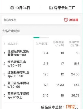 这里也可以对销售收入和采收的成本进行河段,详细查看成本核算的详情数据。