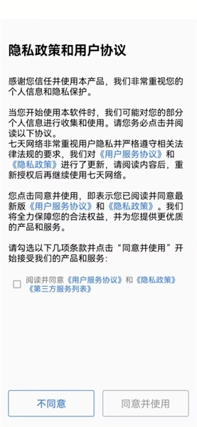 1、打开软件,新用户会显示隐私政策页面,点击下方的同意并使用。
