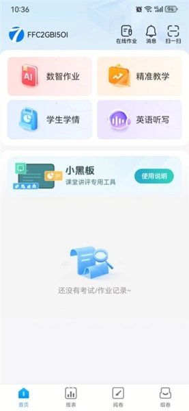 2、进入到主界面,提供数智作业、精准教学、学习学情、英语听写服务。