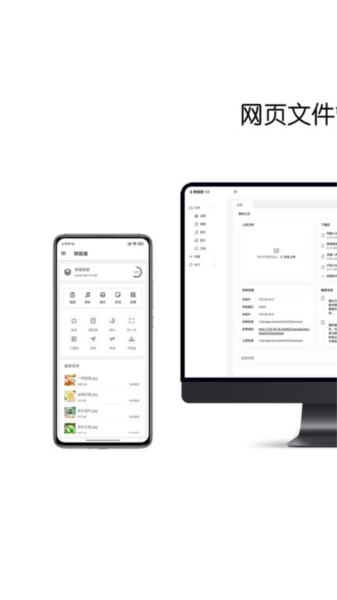 (2.)管理文件。通过其它设备浏览器实现浏览文件、文件、上传文件、删除文件、重命名、浏览相册、播放视频、播放音乐等功能,电脑端实现看手机视频、听音乐,节省手机电量。