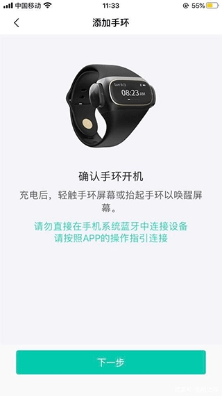 注意:若屏幕未点亮,请先使用磁吸充电线给手环充电10分钟左右,再重复上述步骤。