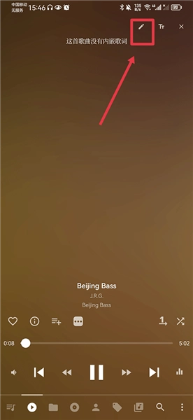 2、要是显示这首歌曲没有内嵌歌词,就点击右上角那个笔形状的图标。