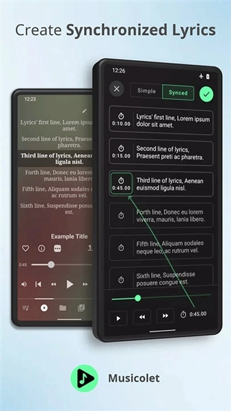 Musicolet支持两种歌词形式:一是嵌入在音频文件ID3标签里的离线歌词,这类歌词可通过标签编辑器进行编辑;二是用于同步显示的.lrc文件。需要注意的是,Musicolet不会自动从网络获取歌词内容——若音频文件未嵌入歌词,需手动在标签编辑器中编写或粘贴歌词;也不会自动获取lrc文件,若需使用lrc歌词,需自行从互联网查找后,将其放在与音频文件相同的文件夹中,并手动重命名为与音频文件名完全一致的名称。