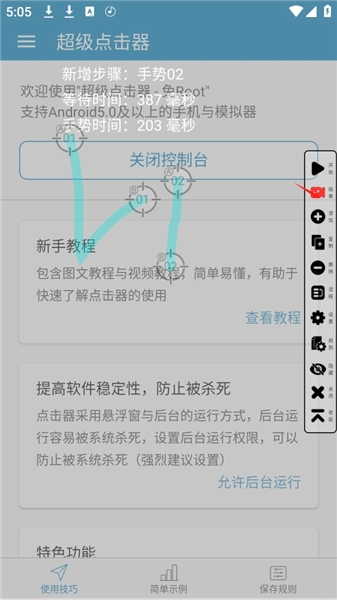 应用要实现自动点击功能,需要用到辅助功能权限和悬浮窗权限,使用前请正确配置这些权限。