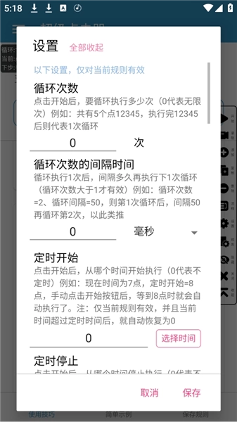 4、依据实际需求,可点击设置选项,对循环操作的次数、每次操作的间隔时长、定时启动或停止的时间等参数进行编辑