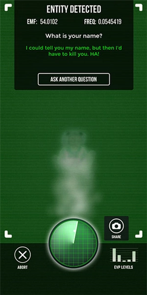 2、只要你打开这款软件,将设备置于空中,画面里便会出现鬼魂搜索雷达;一旦周边有鬼魂接近,它就会发出警报并显示影像。