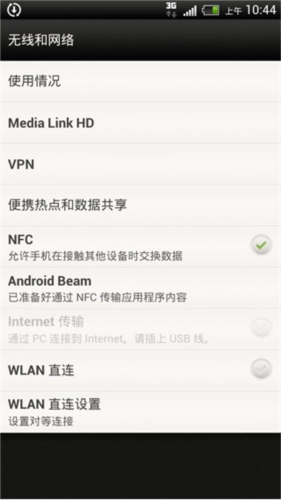 2、选中如下图“NFC”项:允许手机在连接其他设备时交换数据。点击此处打上勾。