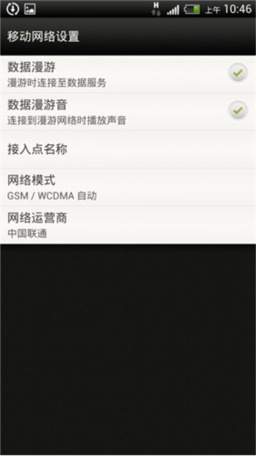 3、设置“移动网络”,如下图将“数据漫游”选中;如使用连接到漫游网络时播放声音,将“数据漫游音”选中。
